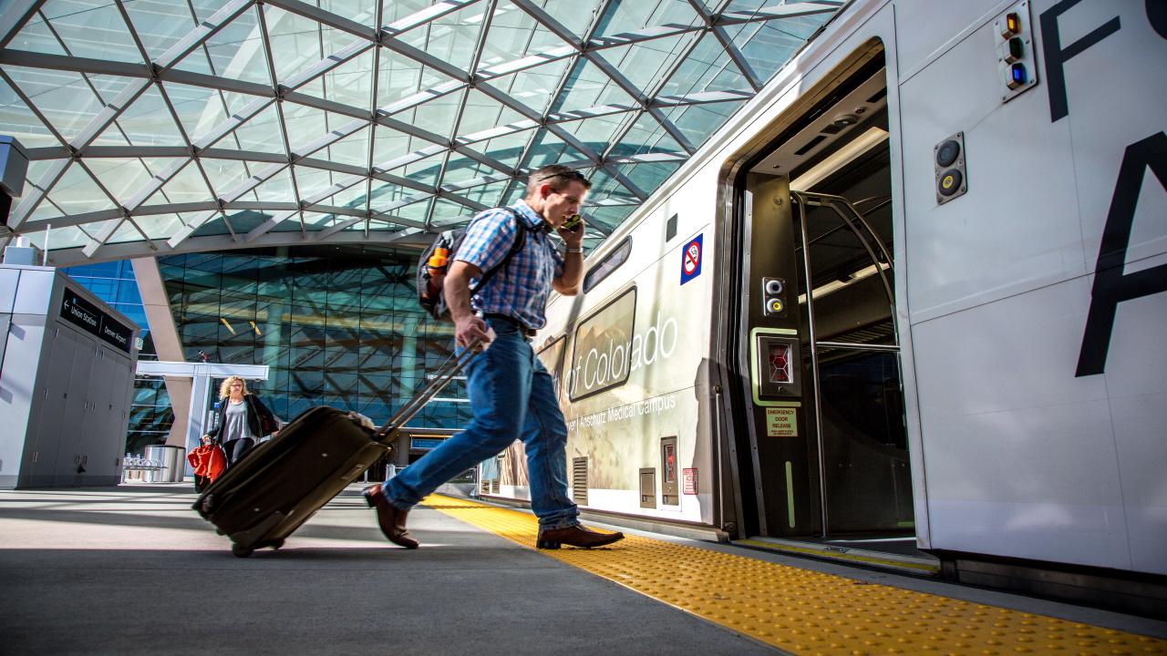 Denver’s RTD provides integrated commuter rail, light rail, and bus service across the metro, including frequent A Line trains between DEN and Union Station in about 37 minutes, with 15‑minute headways most of the day and 30 minutes early/late.