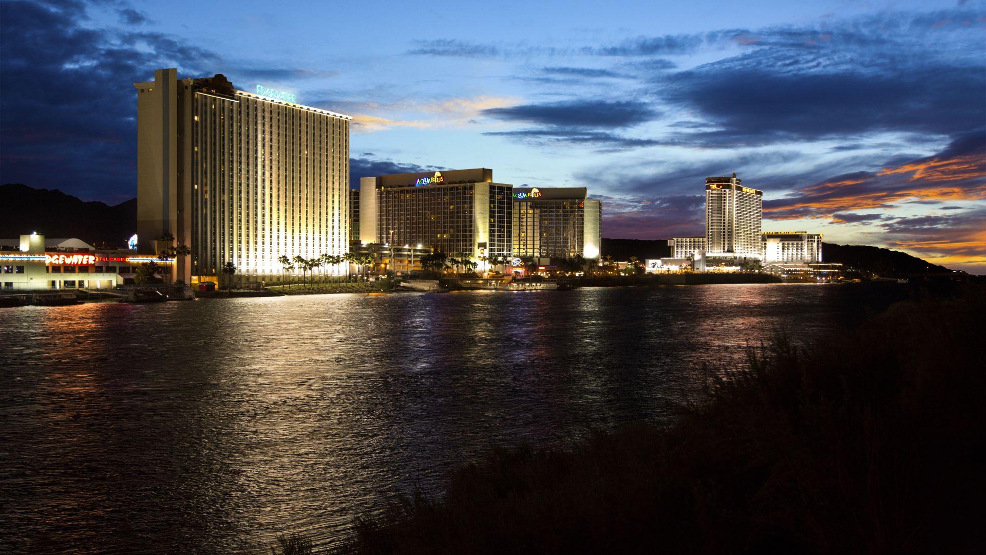 The largest, Aquarius Casino Resort, offers 1,907 rooms and over 30,000 square feet of meeting space, a 3,000-seat outdoor amphitheater as well as three board rooms that can accommodate up to 30 people.