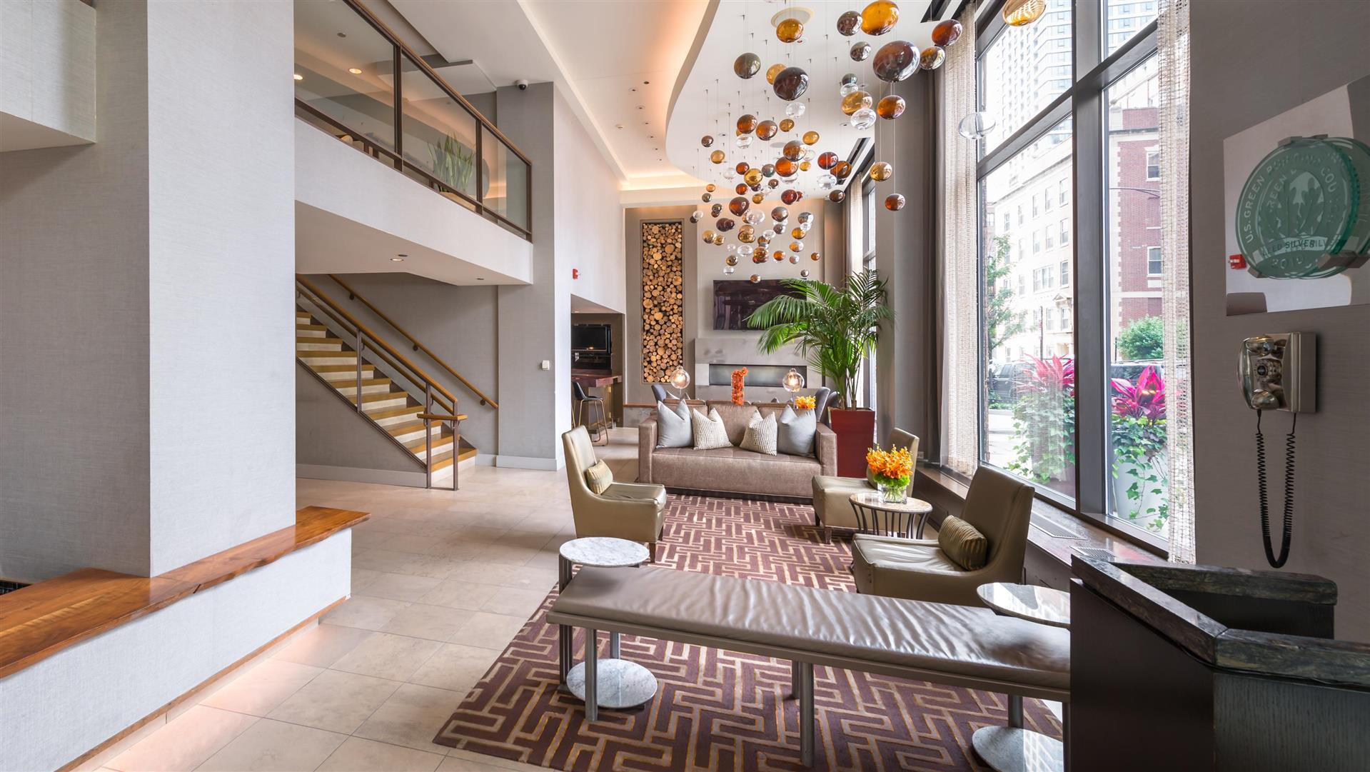 El Hotel Felix Chicago lo invita a disfrutar de un hotel boutique de primer nivel que combina una elegancia confortable con elementos naturales inspiradores, a poca distancia a pie del distrito comercial Magnificent Mile de Chicago, de restaurantes de primera clase y de lugares históricos. Como el primer hotel con certificación LEED Silver de Chicago, disfrute de un entorno enriquecedor que es respetuoso con el medio ambiente. Materiales orgánicos. Recursos renovables. Inodoros de bajo flujo. Y lo más importante, reducir la huella de carbono. Desde las encantadoras aguas danzantes hasta la energía y el ambiente relajantes, encuentra todos los placeres inesperados que te harán feliz. Naturalmente.