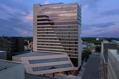 Beautiful 18-story Radisson Blu offers 5,000 sq ft of meeting space, up to 10 meeting rooms, adjacent parking, valet service, complimentary airport shuttle, wi-fi, in-room coffee & bottled water. On-site restaurant, lounge & coffee maker.Beautiful 18-story Radisson Blu offers 5,000 sq ft of meeting space, up to 10 meeting rooms, adjacent parking, valet service, complimentary airport shuttle, wi-fi, in-room coff